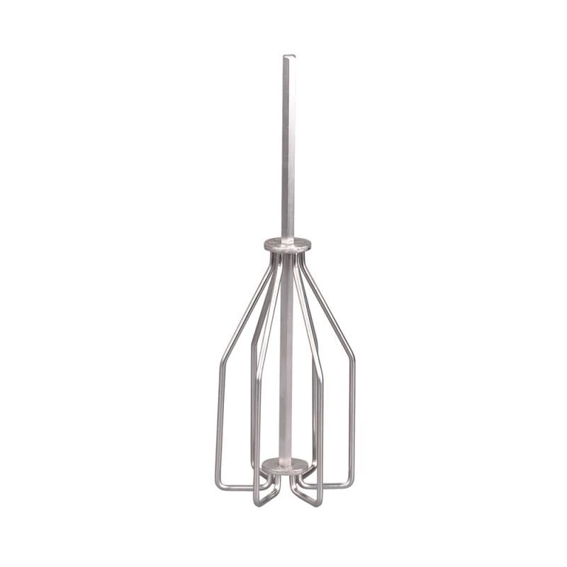 Deze robuuste Groundbait Mixer Medium is ontworpen met 6 RVS draden van 4mm. Door het connectiepunt aan de onderkant naar boven te brengen ontstaat een volledig vlakke onderkant, zodat beschadigingen aan emmer of teil worden voorkomen. De 8mm dikke 6-kantige as zorgt voor een goede fixatie in de boormachine. De afmeting en onderlinge afstand tussen de draden zorgt ervoor dat elke mix van voer en/of leem grondig gemengd kan worden. De korte hoeken aan de onderzijde zorgen ervoor dat elk plaats in de emmer of teil bereikt kan worden, zodat er geen ongemengde gedeeltes achterblijven. Afmeting: 9cm x 28cm